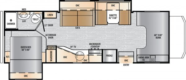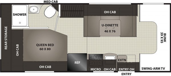 Class C motorhomes are not going to have the same level of storage as their Class A counterparts, and the Tiffin Wayfarer is no different. Their lighter weight also means that they’ll be easier to jostle by the wind while driving. They also have smaller water systems than Class A RVs. However, they will have more options for you overall than a Class B RV.