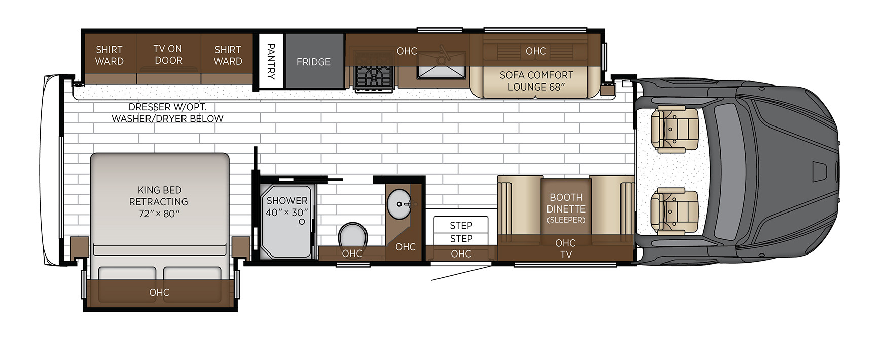 This Grand Star Standard Super C is in great condition has a "3444" floorplan, weighs 24962 (dry), runs on diesel, and is available to you at your family RV dealer Ponchatoula in Ponchatoula, LA.