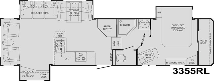 This Heartland Big Country Fifth Wheel has a "3355rl" floorplan, is 33ft 0in long, is brand new, and is available to you at your family RV dealer Holden in Holden, LA.