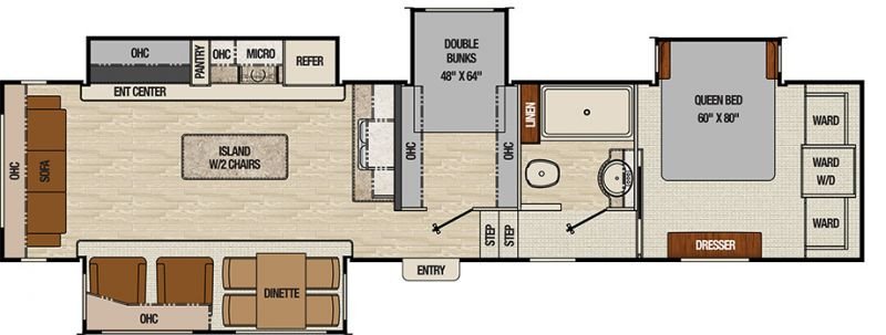 Designed to be affixed and towed by a pickup truck equipped with a special hitch in the truck bed. The unique bi-level design raises the master bedroom over the truck bed, and often has a large picture window at the rear. These RVs have great living quarters, often with slideout options, plus all the comforts of home.