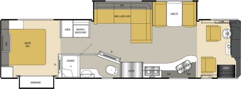 On the road in a Class A is incredibly comfortable. The Class A provides a smooth and stable ride and is easy to drive. Passengers enjoy the ride as well, as they are able to eat, watch TV, play games or even take a nap. Use of the bathroom is also available.