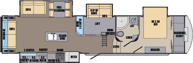 Designed to be affixed and towed by a pickup truck equipped with a special hitch in the truck bed. The unique bi-level design raises the master bedroom over the truck bed, and often has a large picture window at the rear. These RVs have great living quarters, often with slideout options, plus all the comforts of home.