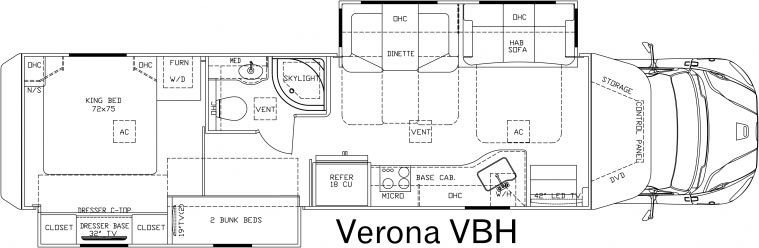 This Renegade Verona Class C has a "40vbh" floorplan, is brand new, runs on diesel, and is available to you at your family RV dealer Ponchatoula in Ponchatoula, LA.