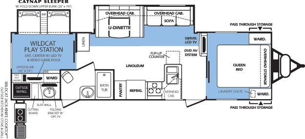 This Forest River Wildcat Travel Trailer weighs 7785 (dry), has a "31bhs" floorplan, is 31ft 0in long, is brand new, and is available to you at your family RV dealer Ponchatoula in Ponchatoula, LA.