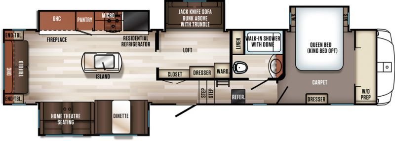 This Forest River Sabre Fifth Wheel weighs 12022 (dry), has a "36bhq" floorplan, is brand new, and is available to you at your family RV dealer Ponchatoula in Ponchatoula, LA.
