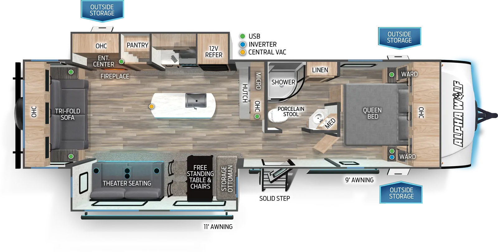 This Cherokee Alpha Wolf Travel Trailer is 34ft 5in long, has a "26rl" floorplan, weighs 7050 (dry), is in great condition and is available to you at your family RV dealer Ponchatoula in Ponchatoula, LA.