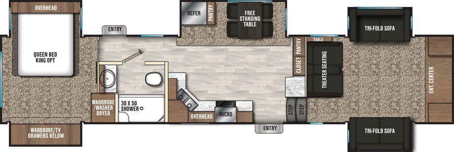 This Chaparral Standard Fifth Wheel weighs 11803 (dry), has a "370fl" floorplan, is 41ft 9in long, is in great condition and is available to you at your family RV dealer Ponchatoula in Ponchatoula, LA.