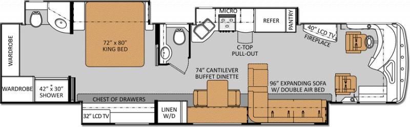 This Thor Tuscany Class A Gas has a "42wx" floorplan, runs on diesel, is brand new, and is available to you at your family RV dealer Ponchatoula in Ponchatoula, LA.