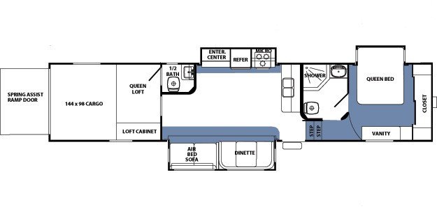It was only a matter of time. Manufacturers have finally designed and built an RV that allows campers to bring along their toys! These units are innovative in their design, combining the comfort and features of a travel trailer with space to bring along your motorcycles, ATVs or other small vehicles. And they even feature a built-in ramp for loading and unloading.