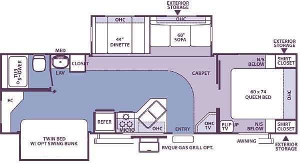 This Forest River Flagstaff Travel Trailer is 31ft 0in long, is brand new, has a "831bhs" floorplan, and is available to you at your family RV dealer Ponchatoula in Ponchatoula, LA.