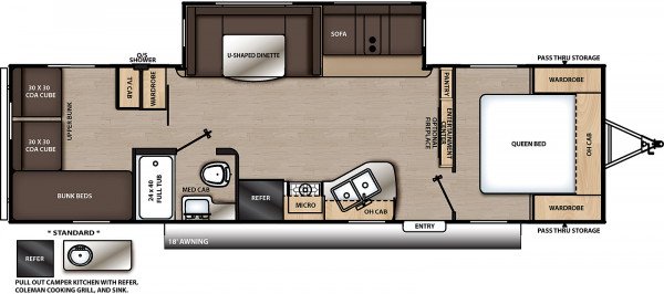 Your Coachmen travel trailer has everything you need, from a full kitchen and bathroom to an entertainment center and luxury seating areas. You can use the kitchen area to store all the food you need for your family's camping trip, saving you money in the long run. Plus, you will always have something to do with a full entertainment center on those rainy days.
