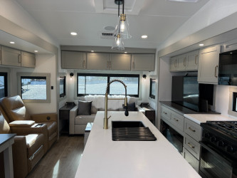 This Brinkley Model Z Fifth Wheel has a "3100" floorplan, is 34ft 11in long, is in great condition weighs 12412 (dry), and is available to you at your family RV dealer Ponchatoula in Ponchatoula, LA.