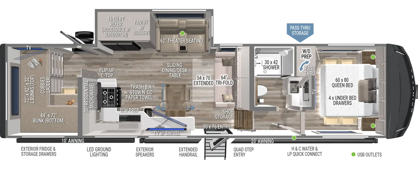 This Brinkley Model Z Fifth Wheel weighs 12188 (dry), is in great condition has a "2810" floorplan, is 34ft 10in long, and is available to you at your family RV dealer Ponchatoula in Ponchatoula, LA.