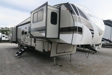 The RV for sale is a New 2020 Chaparral Standard Fifth Wheel by Coachmen RV that and has 5 spacious slides.