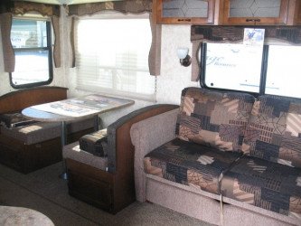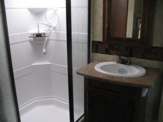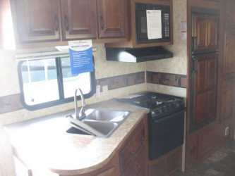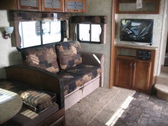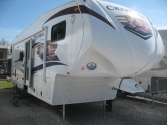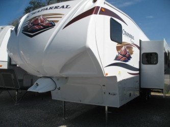The RV for sale is a New 3912 Coachmen Chaparral Fifth Wheel by Coachmen RV that is equipped with a tough fiberglass construction type, is room enough for 8 RV-ers to sleep, and has 2 spacious slides.