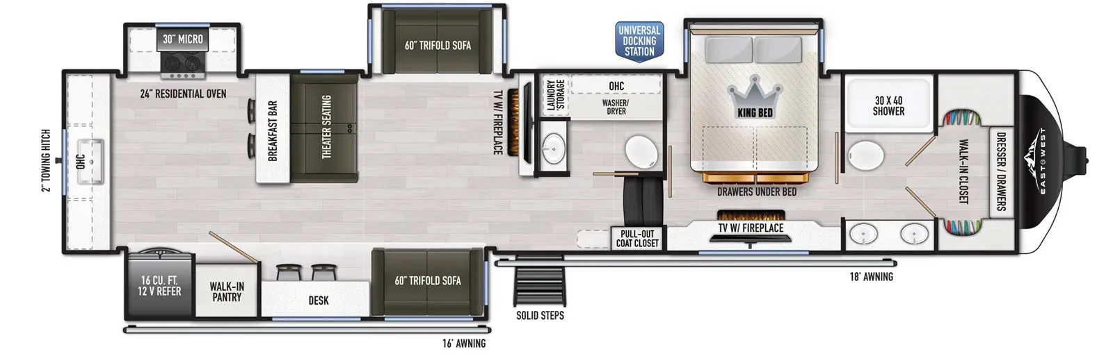 The RV for sale is a New 2026 Ahara Fifth Wheel by East To West RV that and much more.