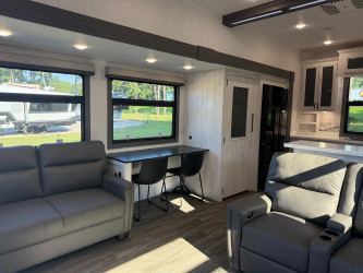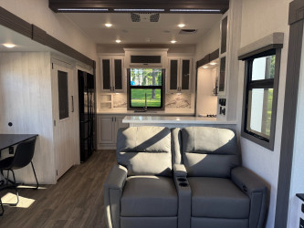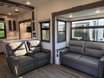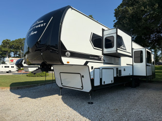 This Ahara 395fb Fifth Wheel weighs 15735 (dry), is in great condition is 44ft 1in long, has a "395fb" floorplan, and is available to you at your family RV dealer Ponchatoula in Ponchatoula, LA.