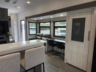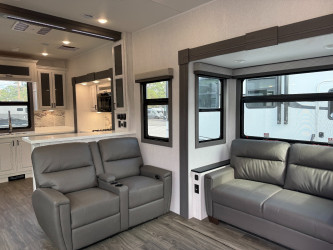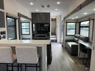 This Ahara 395fb Fifth Wheel weighs 15735 (dry), has a "395fb" floorplan, is in great condition is 44ft 1in long, and is available to you at your family RV dealer Ponchatoula in Ponchatoula, LA.