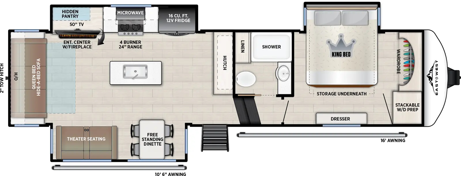 The RV for sale is a New 2025 Tandara Fifth Wheel by East To West RV that and much more.
