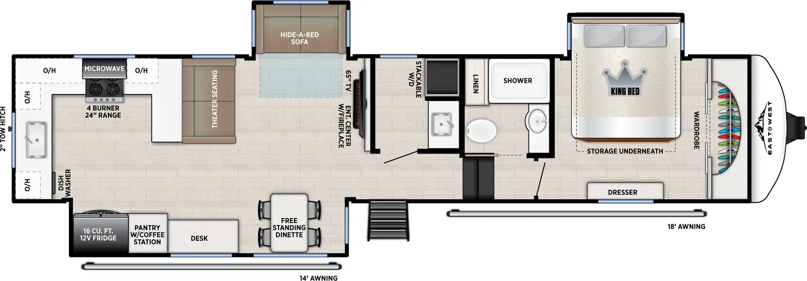 The RV for sale is a New 2026 Tandara Fifth Wheel by East To West RV that and much more.