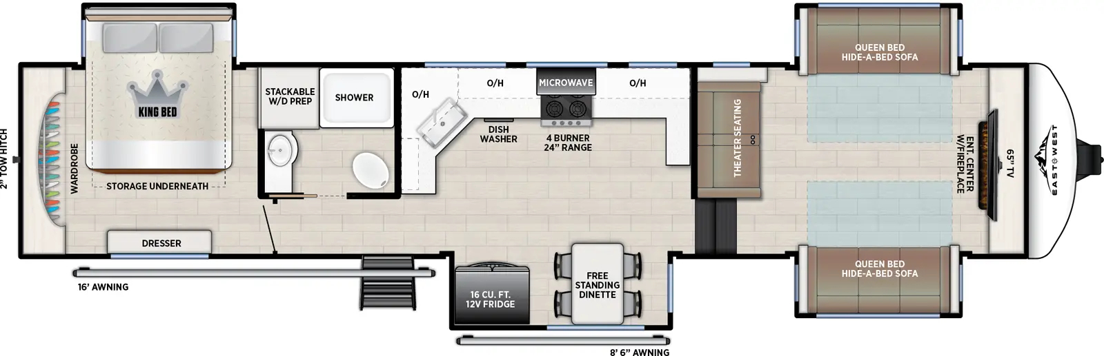 The RV for sale is a New 2026 Tandara Fifth Wheel by East To West RV that and much more.