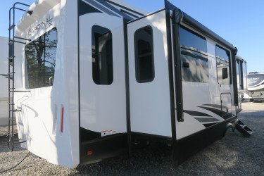 The RV for sale is a New 2022 Cardinal Luxury Fifth Wheel by Forest River RV that and has a slide.