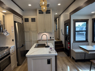 This Cedar Creek Experience Fifth Wheel weighs 14645 (dry), is 43ft 5in long, has a "38db" floorplan, is in great condition and is available to you at your family RV dealer Holden in Holden, LA.