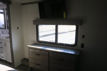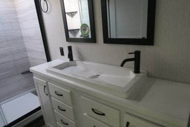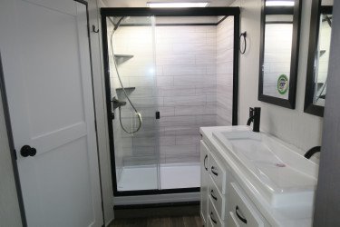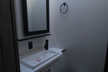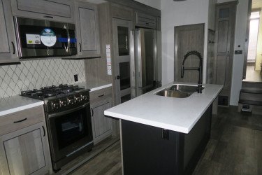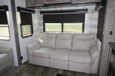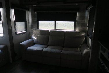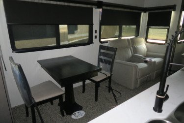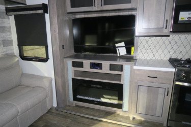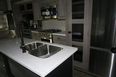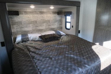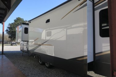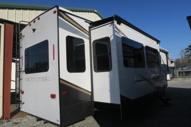 The RV for sale is a New 2021 Cedar Creek Standard Fifth Wheel by Forest River RV that and has 3 spacious slides.