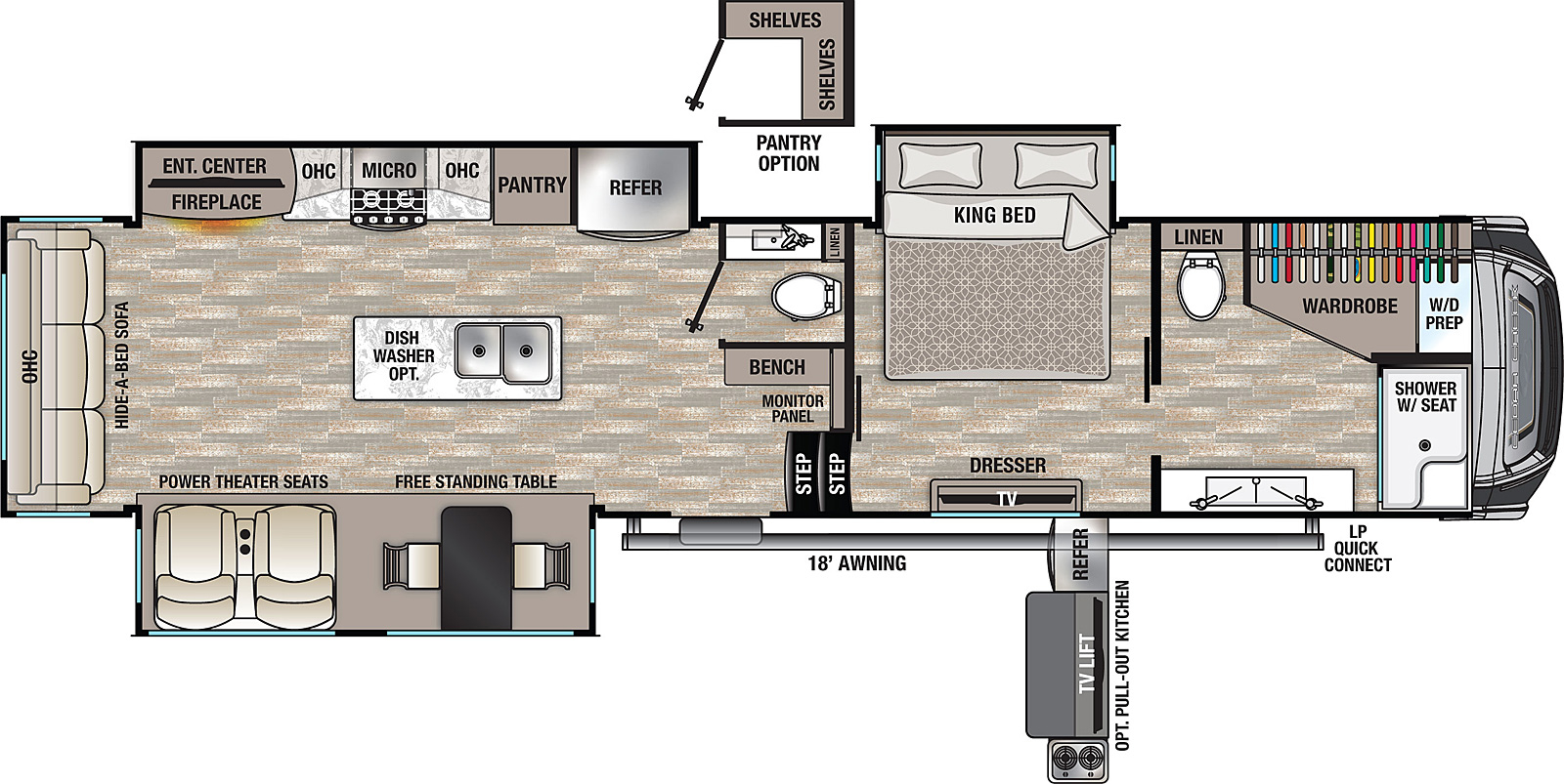 This Cedar Creek Standard Fifth Wheel is 40ft 3in long, has a "388db" floorplan, is in great condition weighs 13005 (dry), and is available to you at your family RV dealer Holden in Holden, LA.