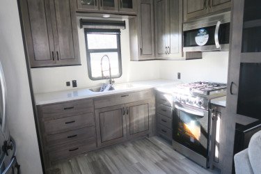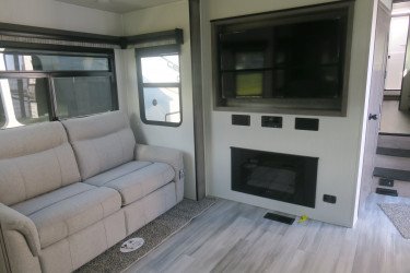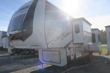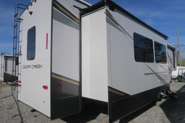 The RV for sale is a New 2022 Cedar Creek 388rk2 Fifth Wheel by Forest River RV that and has 3 spacious slides.
