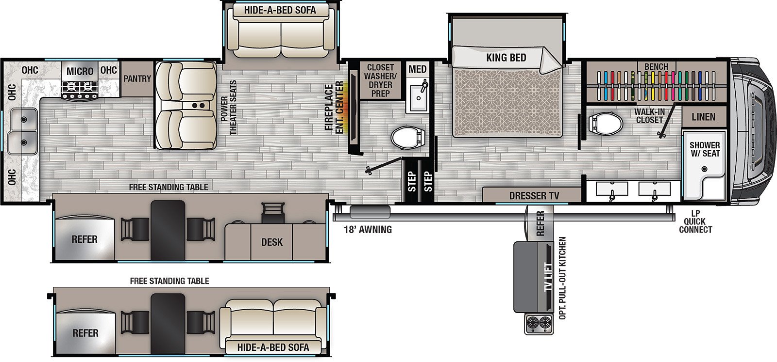 This Cedar Creek 388rk2 Fifth Wheel has a "388rk2" floorplan, weighs 12380 (dry), is 42ft 0in long, is in great condition and is available to you at your family RV dealer Holden in Holden, LA.