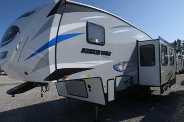 The RV for sale is a New 2020 Cherokee Arctic Wolf Fifth Wheel by Forest River RV that and has a slide.