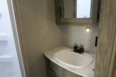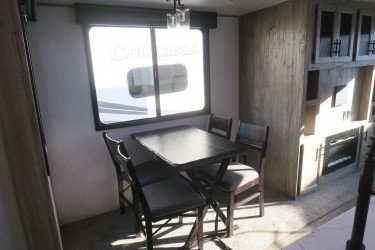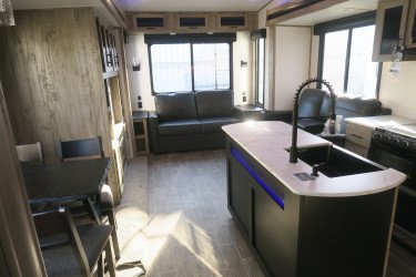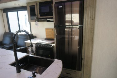 The RV for sale is a New 2021 Cherokee Arctic Wolf Fifth Wheel by Forest River RV that and has 3 spacious slides.