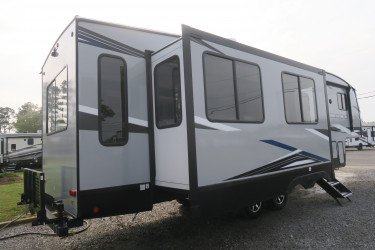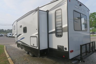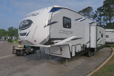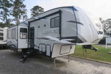 This Cherokee Arctic Wolf Fifth Wheel is 34ft 6in long, weighs 8320 (dry), is in great condition has a "291rl" floorplan, and is available to you at your family RV dealer Ponchatoula in Ponchatoula, LA.