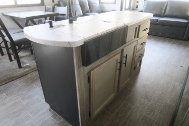 The RV for sale is a New 2022 Cherokee Arctic Wolf Fifth Wheel by Forest River RV that and has a slide.