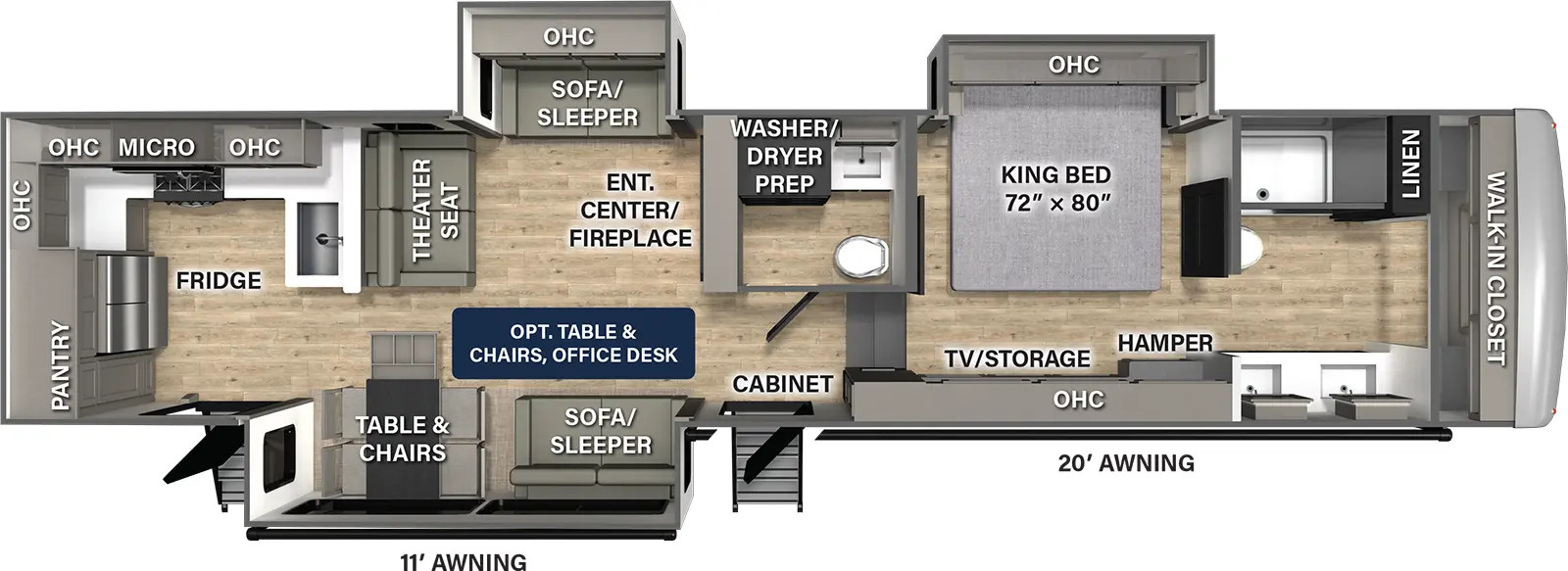 This Columbus 384rkh Fifth Wheel weighs 13755 (dry), is in great condition is 43ft 0in long, has a "384rkh" floorplan, and is available to you at your family RV dealer Ponchatoula in Ponchatoula, LA.