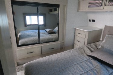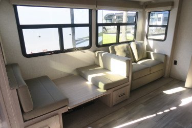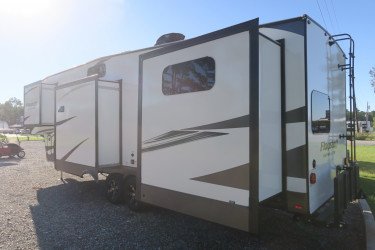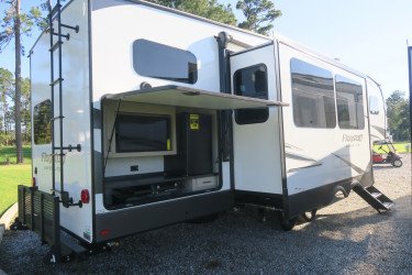 The RV for sale is a New 2022 Flagstaff Super Lite Fifth Wheel by Forest River RV that and has a slide.