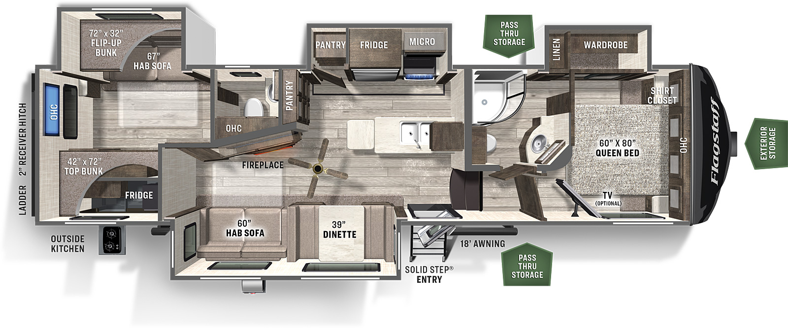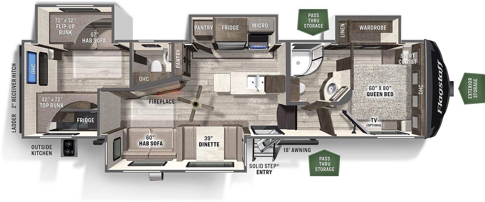 This Flagstaff Super Lite Fifth Wheel has a "529rbs" floorplan, is in great condition weighs 9959 (dry), is 36ft 6in long, and is available to you at your family RV dealer Ponchatoula in Ponchatoula, LA.