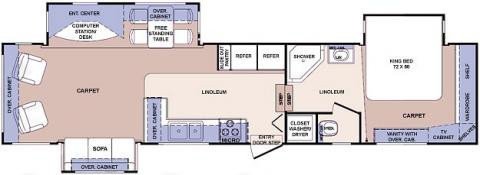 Fifth Wheels are available with a wide range of features and appliances. Some of these are normally found only in higher-end motorhomes, such as a washer/dryer and an on-board generator. Of course all of the standard amenities, and some not so standard such as ceiling fans, are also available.