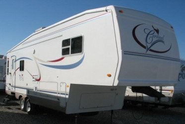 The RV for sale is a Used 3903 Forest River Cardinal Fifth Wheel by Forest River RV that is equipped with a tough fiberglass construction type, is room enough for 6 RV-ers to sleep, and has 2 spacious slides.