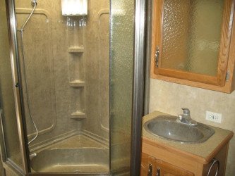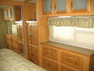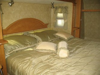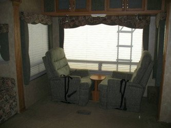 Fifth Wheels are constructed with a raised forward section for the master bedroom, allowing a bi-level floorplan. This style provides more room in the "living" area of the unit. Add in a couple of slide-outs in the living/dining area and a slide-out for the bedroom area, and it's easy to see why they are more spacious and the RV of choice for full-timing.