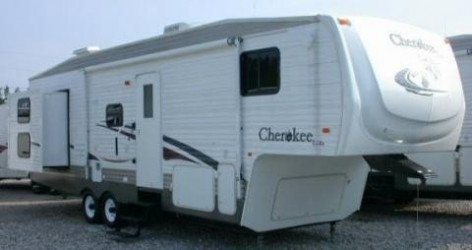 The RV for sale is a New 3907 Forest River Cherokee Fifth Wheel by Forest River RV that is equipped with a tough aluminum construction type, is room enough for 6 RV-ers to sleep, and has 2 spacious slides.