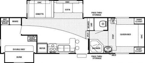 Floorplans and amenities in Travel Trailers are almost endless. Options can include zero, one, two or three slide-outs, one or two entry/exit doors, full size bed(s) and/or bunk beds, compact or full-size refrigerators, stoves with ovens, multiple dining facilities, full bathroom facilities with a tub/shower, and the list goes on and on.