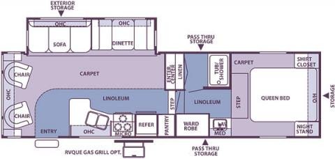 Fifth Wheels are available with a wide range of features and appliances. Some of these are normally found only in higher-end motorhomes, such as a washer/dryer and an on-board generator. Of course all of the standard amenities, and some not so standard such as ceiling fans, are also available.