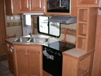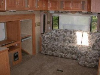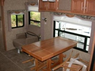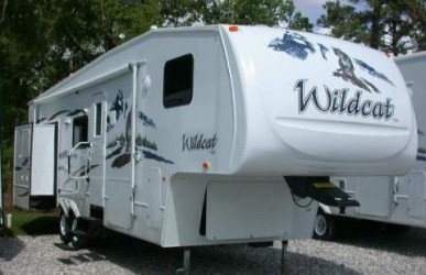 The RV for sale is a New 3906 Forest River Wildcat Fifth Wheel by Forest River RV that is equipped with a tough fiberglass construction type, is room enough for 4 RV-ers to sleep, and has 2 spacious slides.