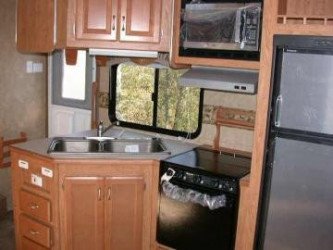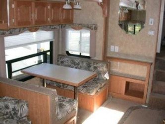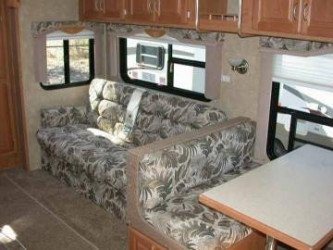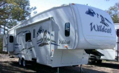 The RV for sale is a New 3906 Forest River Wildcat Fifth Wheel by Forest River RV that is equipped with a tough fiberglass construction type, is room enough for 6 RV-ers to sleep, and has 2 spacious slides.