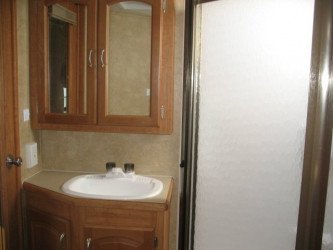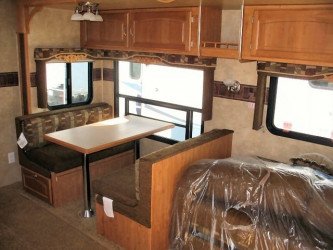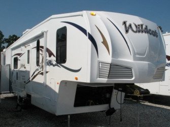 The RV for sale is a New 3909 Forest River Wildcat Fifth Wheel by Forest River RV that is room enough for 8 RV-ers to sleep, is equipped with a tough fiberglass construction type, and has 2 spacious slides.