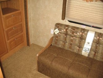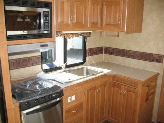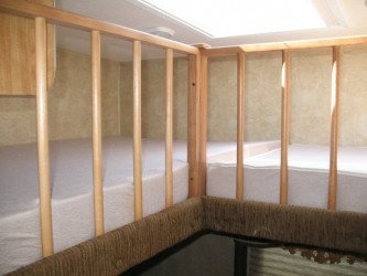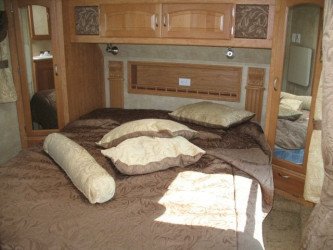 Fifth Wheels are constructed with a raised forward section for the master bedroom, allowing a bi-level floorplan. This style provides more room in the "living" area of the unit. Add in a couple of slide-outs in the living/dining area and a slide-out for the bedroom area, and it's easy to see why they are more spacious and the RV of choice for full-timing.