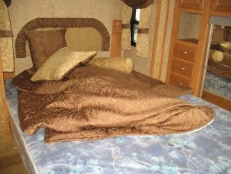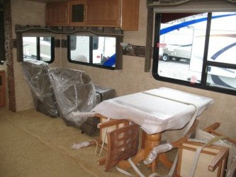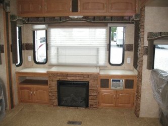 The RV for sale is a New 3909 Forest River Wildcat Fifth Wheel by Forest River RV that is room enough for 6 RV-ers to sleep, is equipped with a tough fiberglass construction type, and has 3 spacious slides.