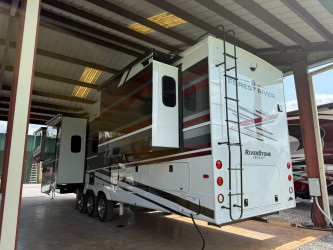 This Riverstone Legacy Fifth Wheel weighs 18255 (dry), is 45ft 0in long, has a "421fk" floorplan, is in great condition and is available to you at your family RV dealer Holden in Holden, LA.